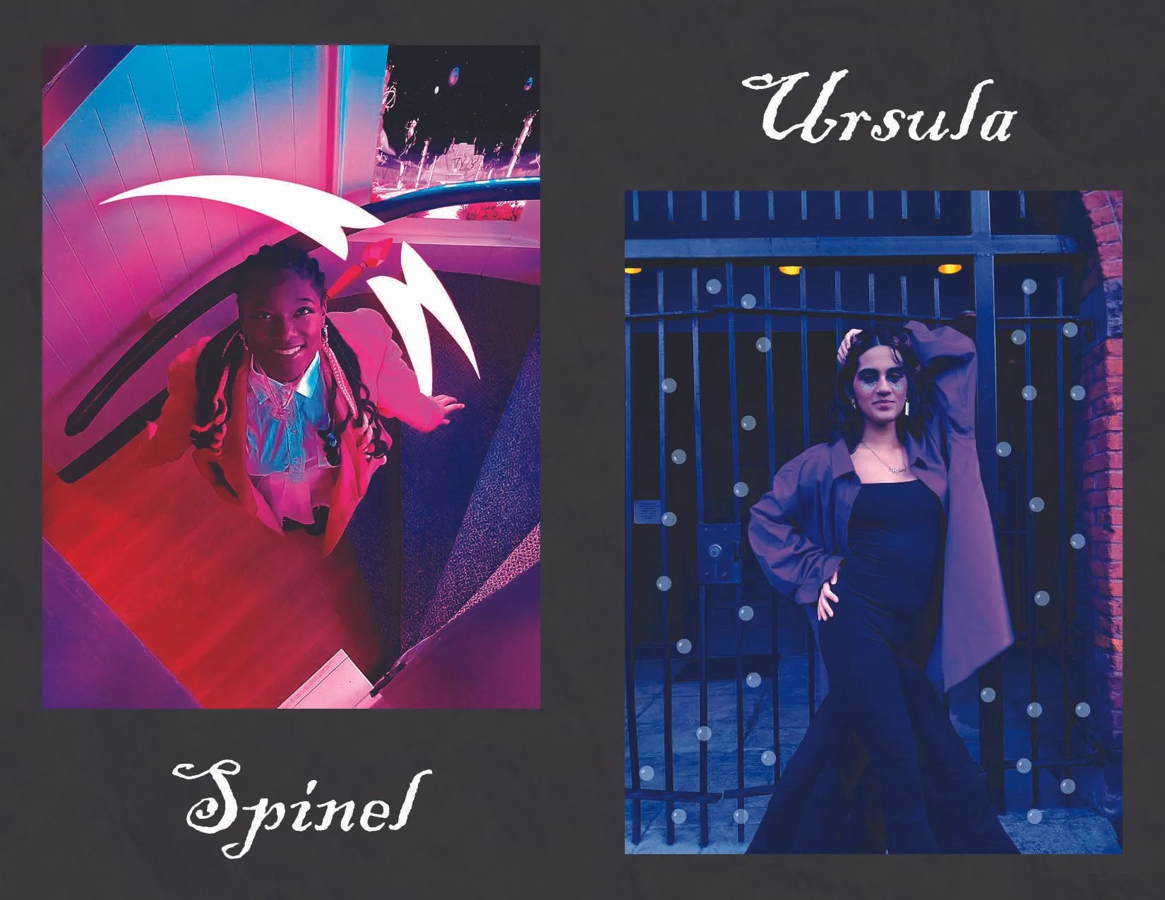 I decided to edit each photo to include more references and stylistic choices for each character, rather than removing or “fixing” anything about the models themselves.